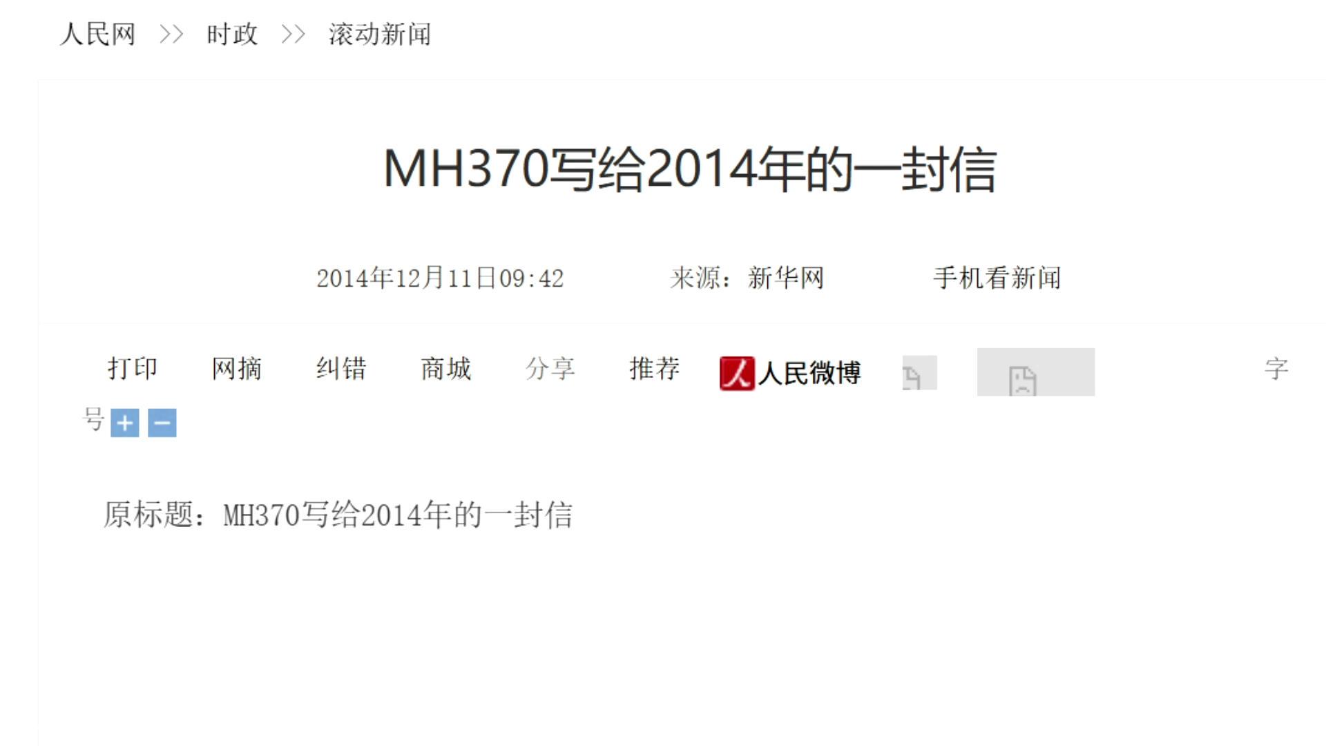 就在马航失联当年,新华网也曾发布了一篇题为《MH370写给2014年的一封信》的文章,文章里若有深意的种种表述,也算是在某种程度上迎合了美军击落说的猜测。