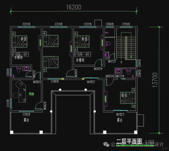 二层:四个卧室,一公卫,2个私卫,一书房,2露台